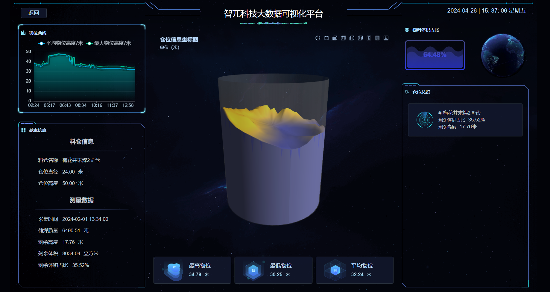 精细化管理筒仓物料状态变化,统计、分析相关数据,并自动生成相关报表。