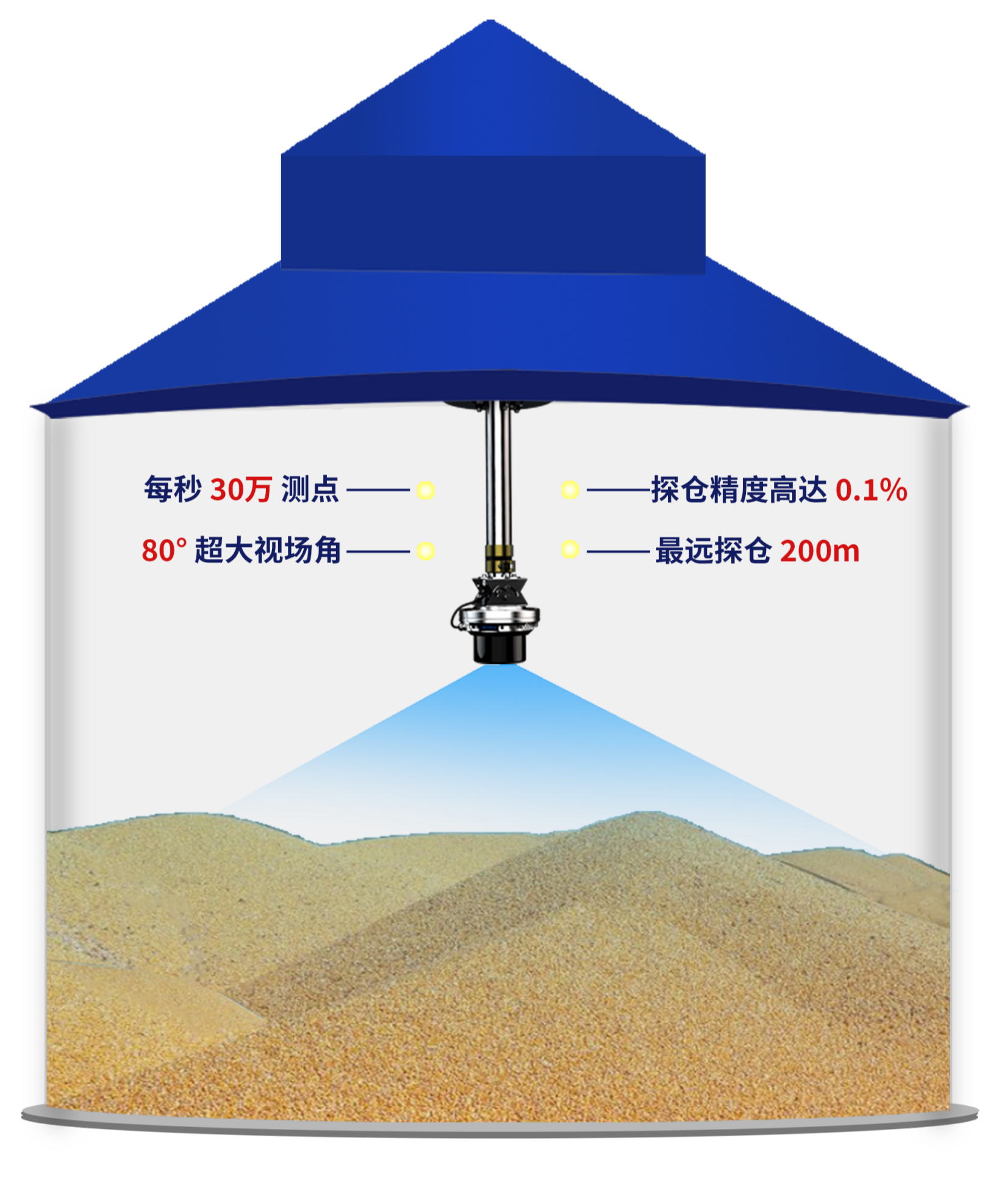 场景开发的一款专业盘库产品,可对粮仓进行实时测量。